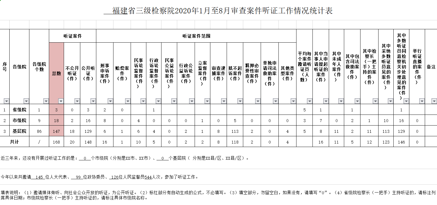 福建省三级检察院2020年1月至8月审查案件听证工作情况统计表