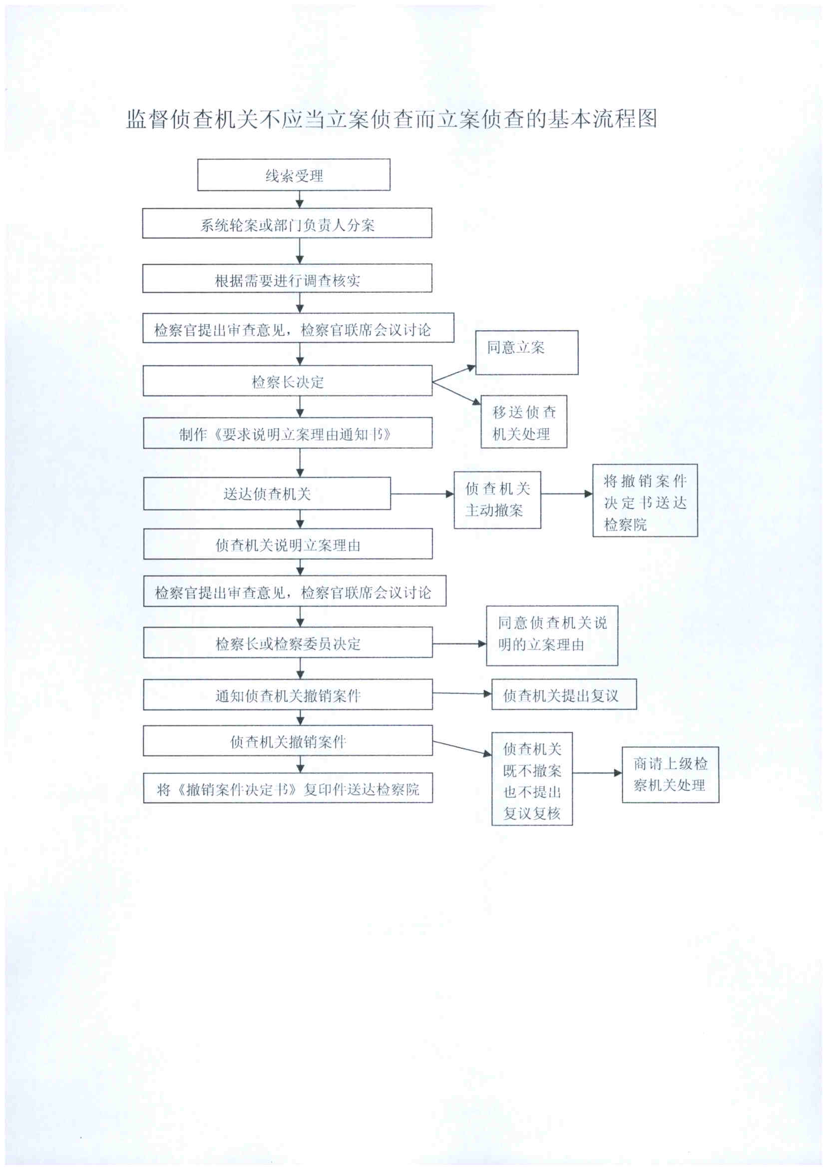 监督侦查机关不应当立案而立案侦查的基本流程图