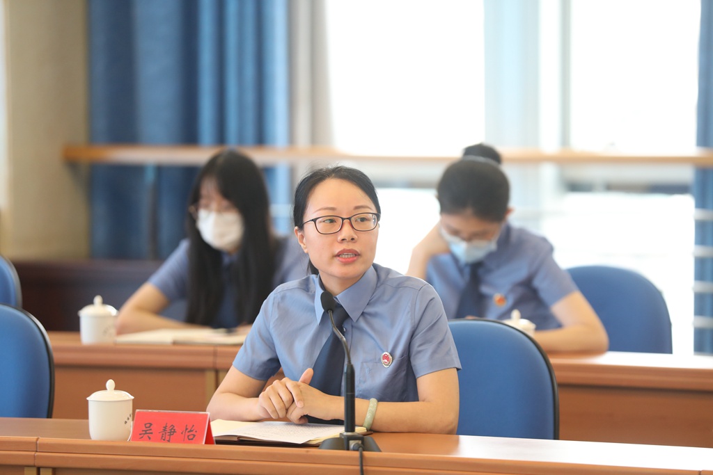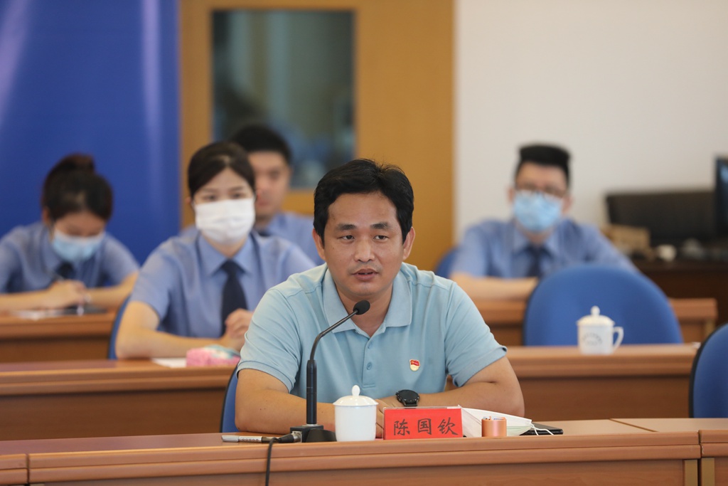 7月1日下午,为进一步引导青年干警学习新思想、建功新时代,福建麻豆传媒 机关党委、青工委、团总支召开“听战‘疫’体会,学先进青年”主题分享会。这次分享会既是机关纪念建党99周年的系列活动之一,也是“检察有我,青年担当”系列青年主题活动之一。省院党组成员、政治部主任、机关党委书记王金文,省直团工委书记陈国钦,省院干部处处长陈良华以及相关部门负责人、机关部分35周岁以下青年干警、书记员参加会议。机关党委专职副书记叶孝祖主持分享会。