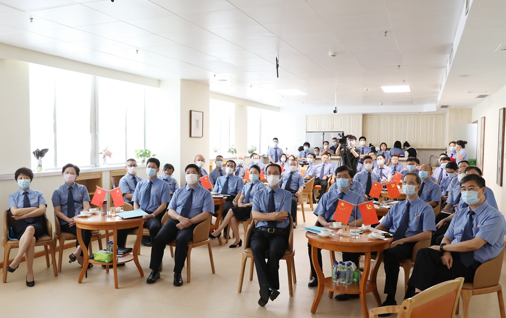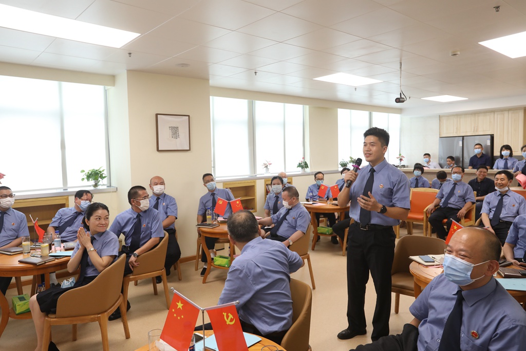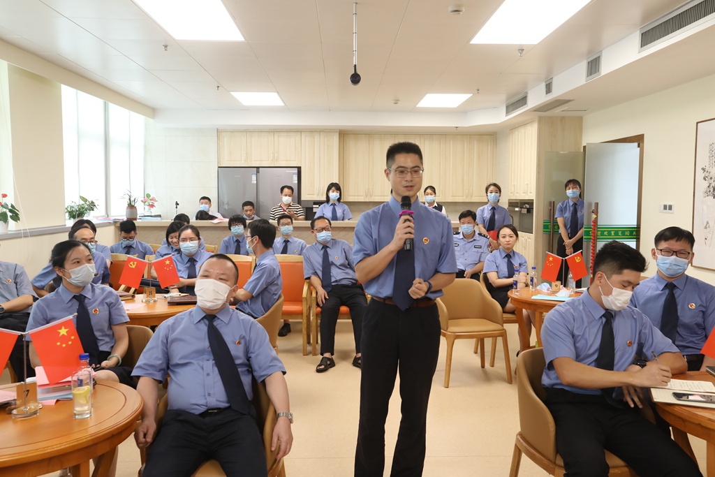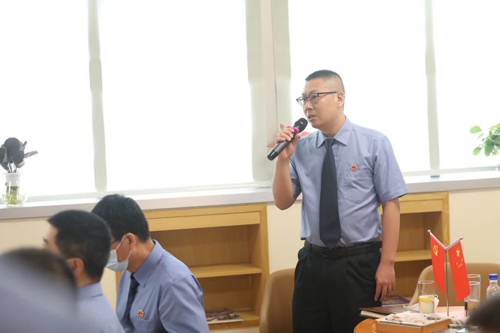 省院机关援藏援疆干部代表法警总队温晓勇、疫情防控志愿队代表第七检察部王斌、综合行政业务骨干代表办公室林宝存、检察业务骨干代表第九检察部张力琳、青年干警代表吴秋兰等5位党员干部代表围绕主题,结合自身入党、从检经历和岗位成长分享心得体会。
