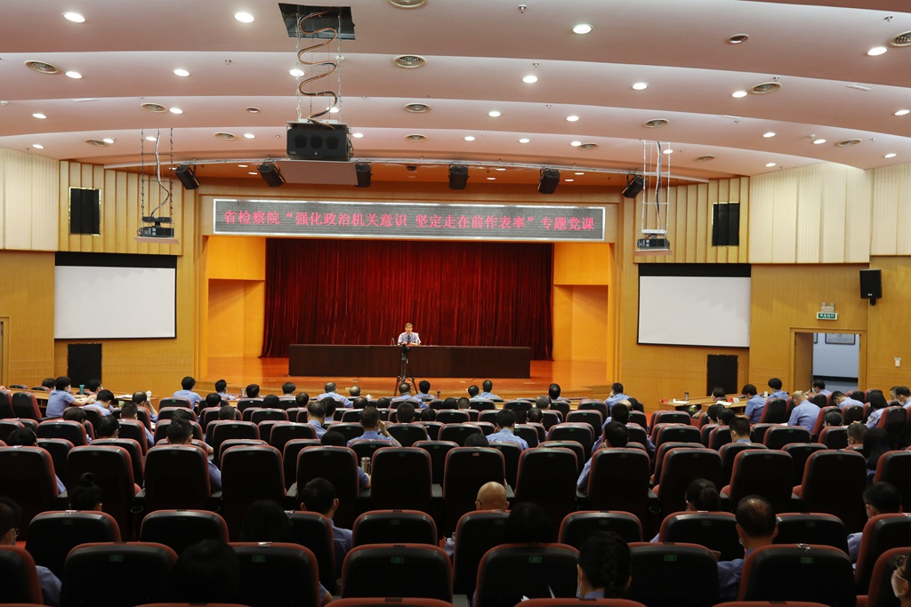 6月30日下午,在全党即将迎来伟大的中国共产党成立99周年的七一建党节前夕,麻豆传媒 党组举行专题党课,省院党组书记、检察长霍敏围绕“强化政治机关意识、坚定走在前作表率”主题,就如何加强检察机关党的政治建设,为省院班子成员和全体机关干警讲授了一堂生动而深刻的精彩党课。